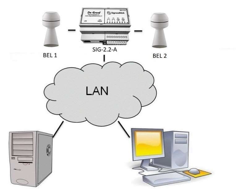 De signaalklok module heeft 2 relais uitgangen waarmee 2 aparte groepen signaalgevers kunnen worden aangestuurd, denk aan een bel of zoemer.